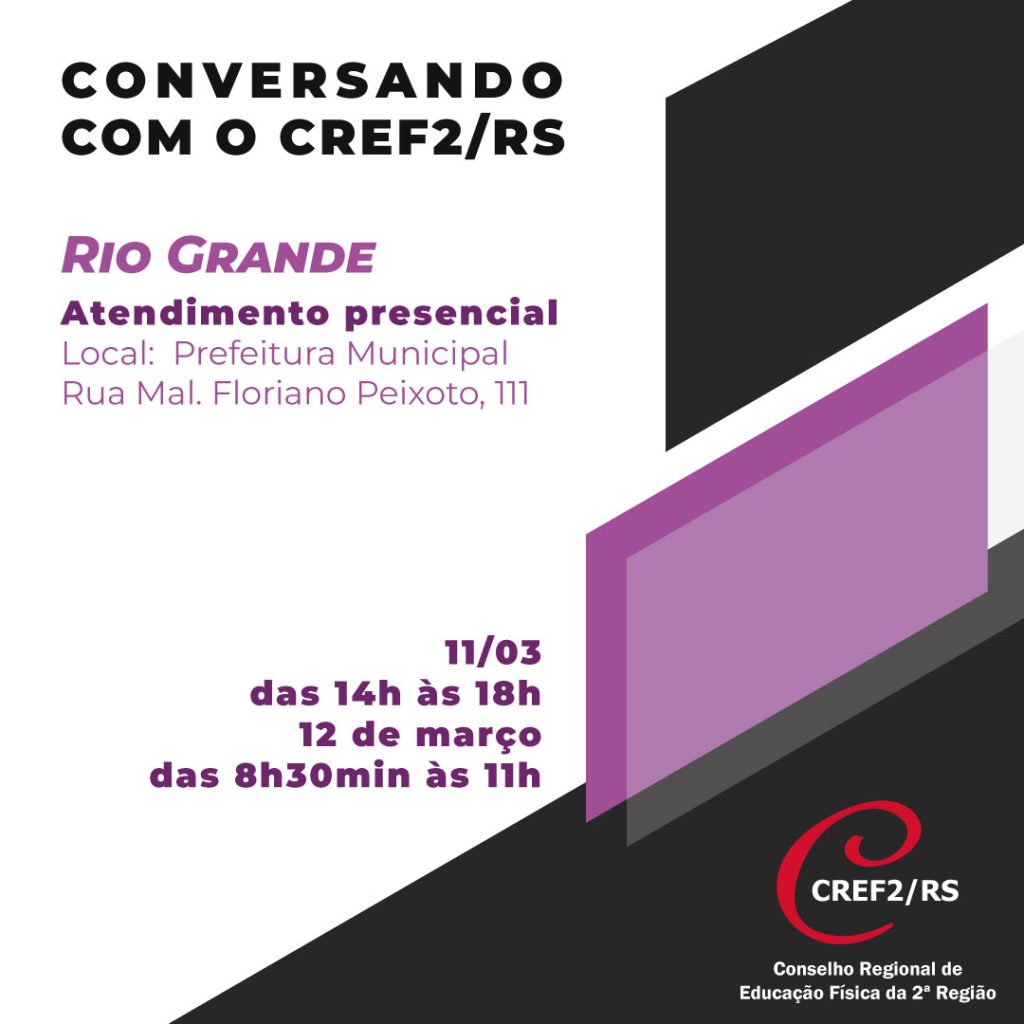 Conversando com CREF2/RS ocorre em Rio Grande na próxima semana somente com atendimento ao público