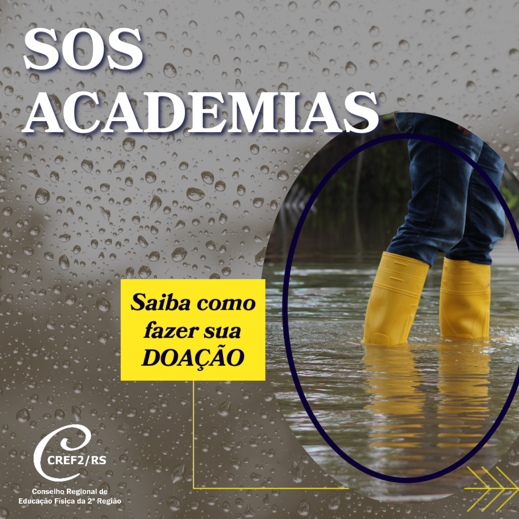 O CREF2/RS, em solidariedade com a grave situação em que se encontram as vítimas das enchentes, está organizando a campanha SOS Academias. A ação tem o intuito de auxiliar as empresas registradas dos municípios mais afetados, com a arrecadação e a doação de equipamentos de ginástica, aparelhos de musculação, móveis e eletrônicos.