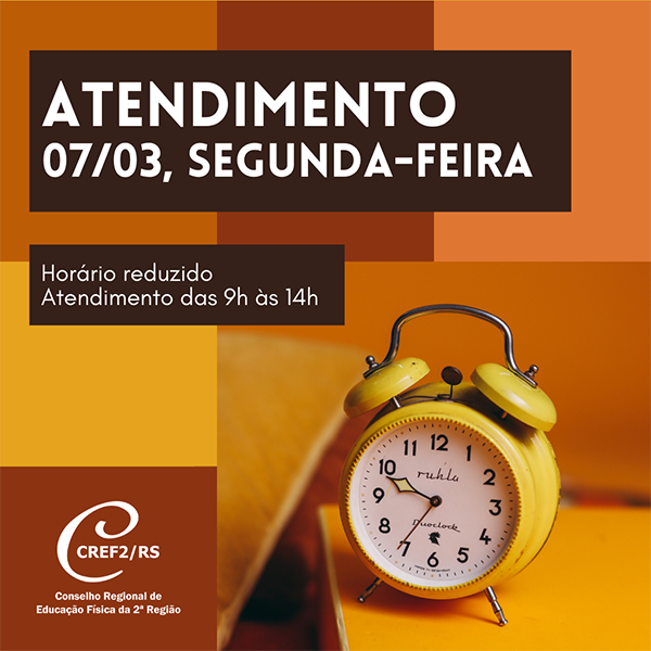 CREF2/RS atende só até às 14 horas no dia 7 de março